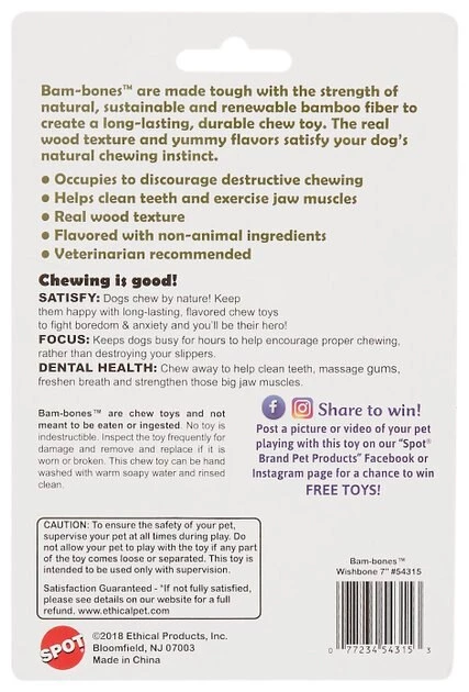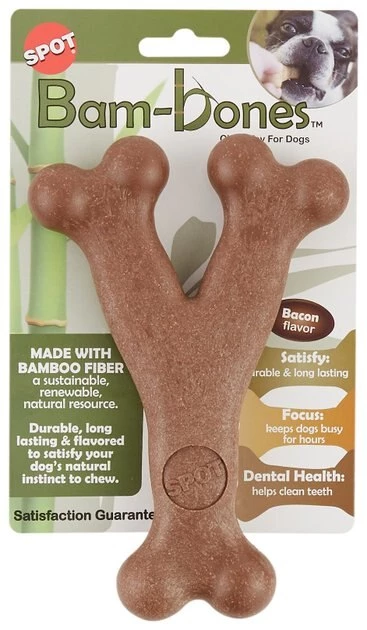 Make your dog’s wish come true with Bam-bones Wishbone Bacon Dog Toy. It’s made from sustainable and renewable bamboo fibers and has a mouthwatering bacon flavor dogs love. This long-lasting chew is perfect for a game of toss and fetch or supervised solo play. Now you can give your favorite canine companion a toy you can both can feel good about. This toy is a great way to keep your pup busy and free of boredom, plus biting down on the hard texture will help keep his teeth and gums healthy and clean.