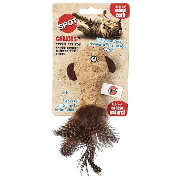 Work on your feline’s cork competencies with the Ethical Pet Corkies Toy & Nip Cat Toys. These cute little animal toys are made of natural cork with fluffy feather tails for loads of bat-able, chase-able fun! With irresistible catnip to get your fur-ball playing hard, they come in three fun characters guaranteed to delight you and your BFF! Each order ships with one Corkie in a style chosen at random—see which one you get!
