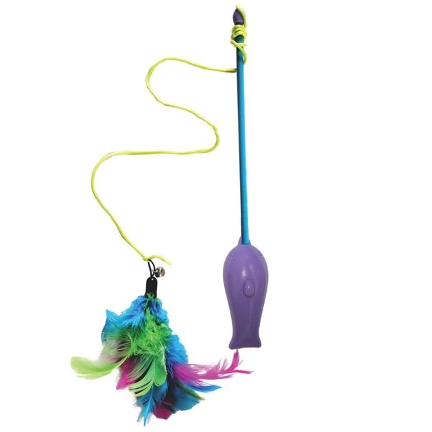- Fun teaser wand has a fluttery feather toy to entice your cat to play.