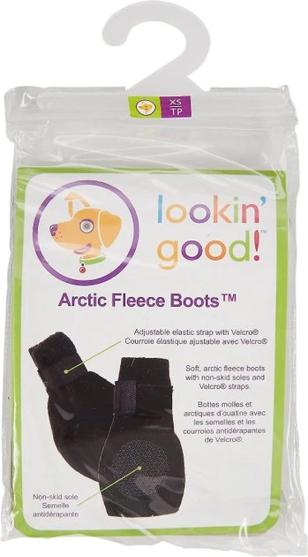 Remember to measure your pet for the paw-fect fit.A soft fleece boot that helps to protect paws from hot pavement, salt and injury. The boot is also great for indoor use to prevent slipping or scratch marks on hardwood floors. Made of 100% polyester polar fleece the boot has an elastic strap for easy on/off and a non-skid PVC sole.
