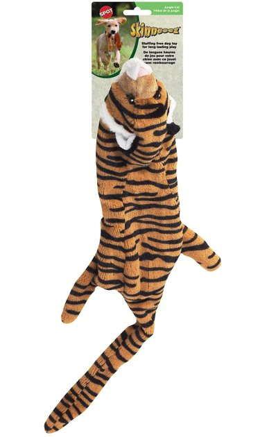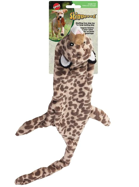Make your doggo feel like the real king of the jungle with Ethical Pet Mini Skinneeez Jungle Cat Dog Toys. These little big cat toys feature a no-stuffing design that helps them flip and flop limply while dogs play. It activates the natural hunting instinct in your furry bud while keeping your house nice and clean. Two squeakers inside bring lots of noise to the hunt, while the 13-inch size makes these toys perfect for little dogs and puppies. Each order ships with either a tiger, lion or leopard toy chosen randomly for a fun jungle surprise!