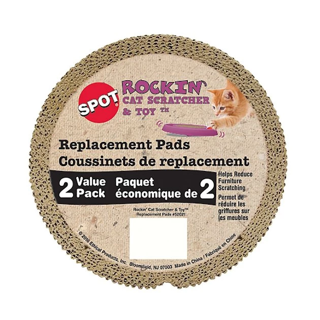 Keep playtime rockin’ and rollin’ with these Ethical Pet scratcher replacement pads. Designed specifically for the Rockin’ Cat Scratcher toy, these replacement pads keep your feline’s favorite toy as good as new and ready to use. They are made from corrugated cardboard to satisfy your cat’s natural urge to scratch. Once the old pad gets worn out, simply replace it with a fresh one. Each purchase comes with two scratcher pads to provide your cat companion with many additional hours of play and enjoyment.