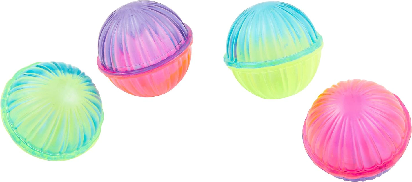 Ethical Pet Shimmer Balls Cat Toy just made playtime with your kitty much more exciting. Toss around and watch your cat enjoy the rattling sound. Four multi-colored shimmer balls that are safe and non-toxic.