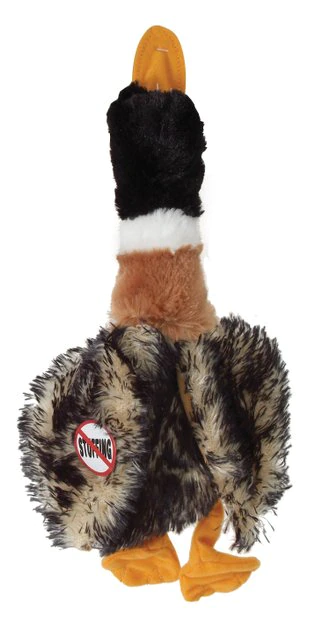 Quack the code on healthy play with the Ethical Pet Skinneeez Mallard Duck Dog Toy. This stuffing-free Skinneeez toy satisfies the natural canine hunting instinct by mimicking captured prey. It flip-flops alluringly when shaken and hangs limply when carried around, for a realistic “hunting” experience your pup will love! With a squeaker for added fun during play, this duck has plush fur that makes it great for cuddle-time, too.