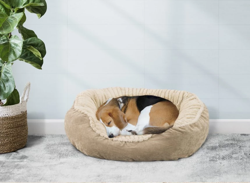 - Comfy bed has a ribbed plush interior for warmth and comfort.