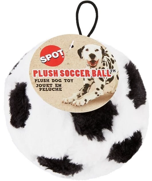 Ethical Pet Plush Soccer Ball Dog Toy is great for interactive play. Score a goal with your dog using this soft, cute football. Gives your dog a great “mouth-feel” as he fetches it from the other side of the room or carries it to you for a game. Soft enough for indoor playtime.