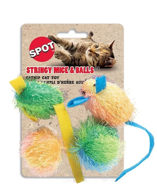 String your fur-baby along for some fun with the Ethical Pet Stringy Mice & Ball Cat Toys. These fabulously shaggy toys include two mice and two balls made of soft and fuzzy material your cat will love. With catnip for extended frenzied play sessions, these mice and balls are sure to become a new fave for your feline.