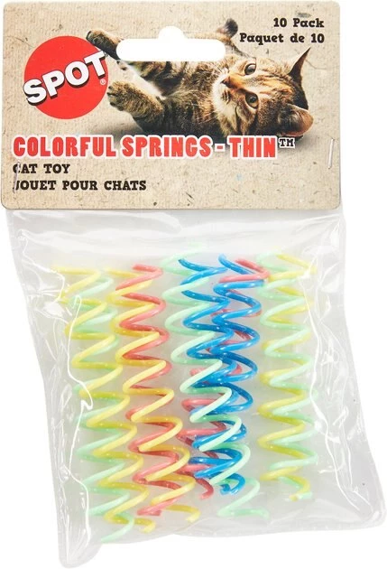 Put a little “spring” in your cat’s step with these colorful, bouncy, plastic spring cat toys. Your cat will have fun chasing them around while their unpredictable bounce will drive them nuts! Great toy to entertain your ferret too!