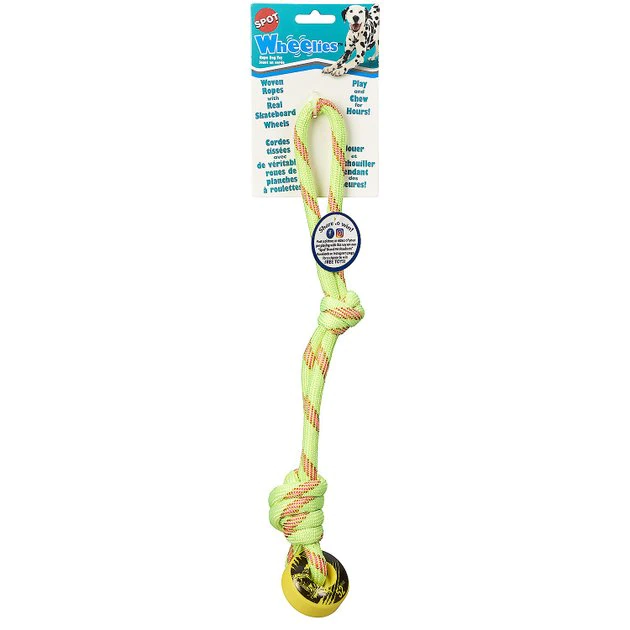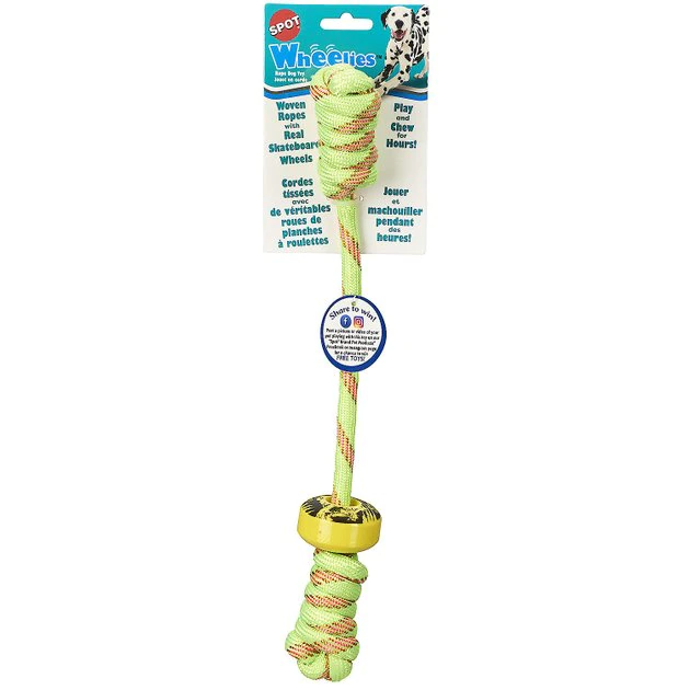 Make playtime extra rad with the Ethical Pet Wheelies Rope Dog Toy. Every purchase comes with one toy that ships at random for a fun surprise! These gnarly toys feature durable woven ropes with knots and real skateboard wheels that are great for tug of war and chewing. Different designs feature loops, knots and twisted ends for a variety of different play and chew options. Your dog will do kickflips every time you bring out this toy!
